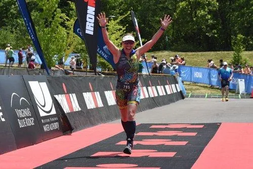 "This was me at 53, crossing the finish line of my first half Ironman. I didn’t know what I was doing at first—but I started. So can you." —Dr. Nancy