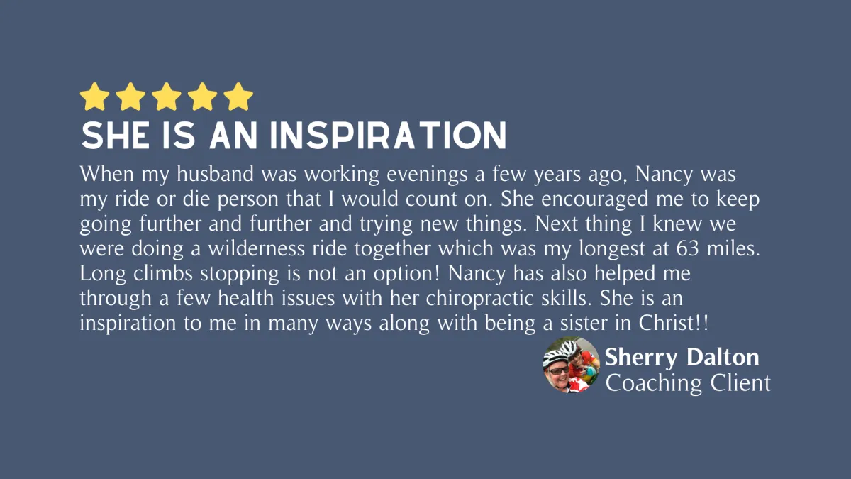 As a Certified Christian Life Coach, speaker, author, and Ironman athlete, Dr. Nancy brings a unique, whole-person approach that addresses the physical, mental, and spiritual aspects of your life—so you can thrive in every season.